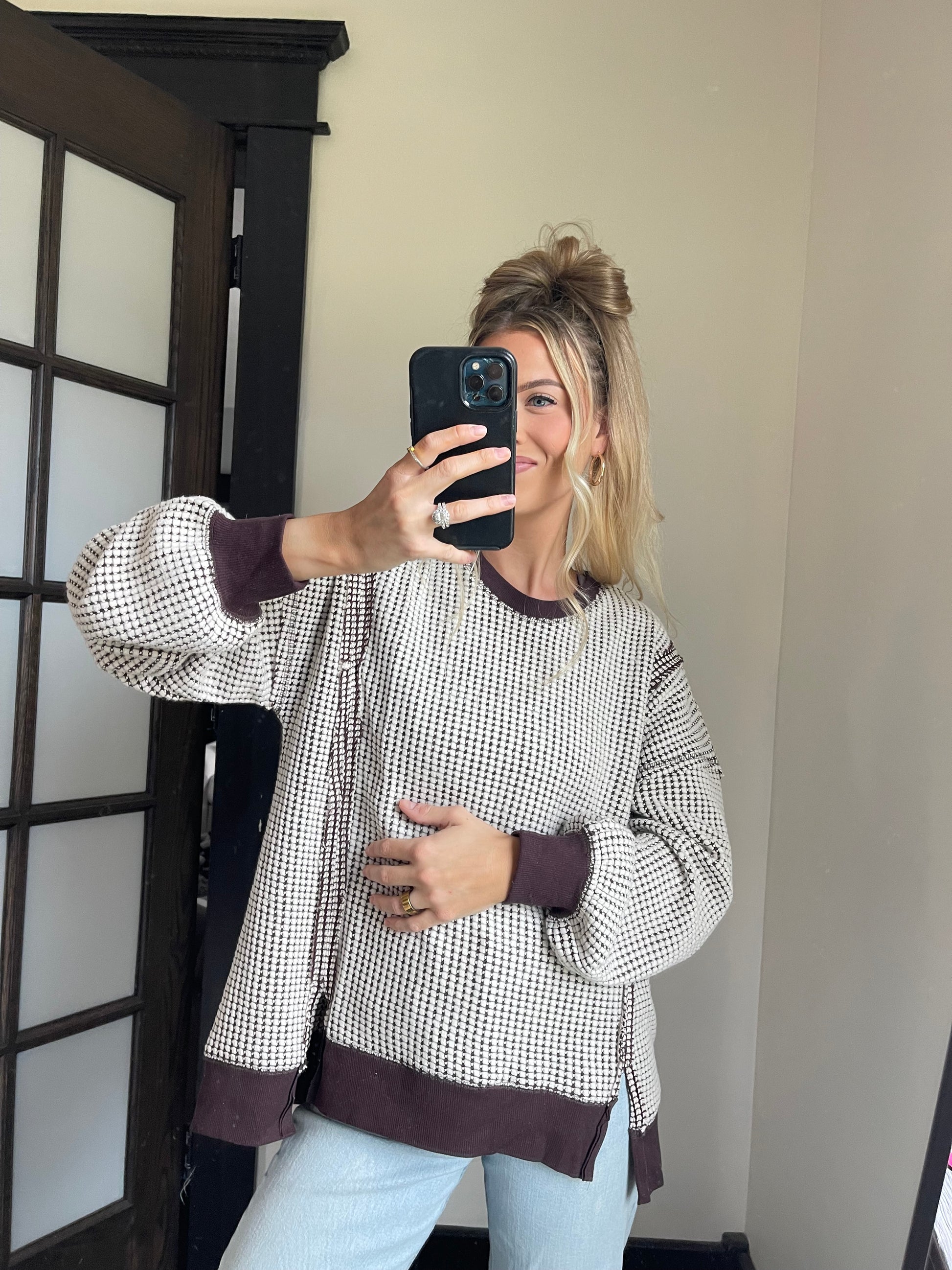 (PREORDER) Waffle Knit Casual Top - Chocolate